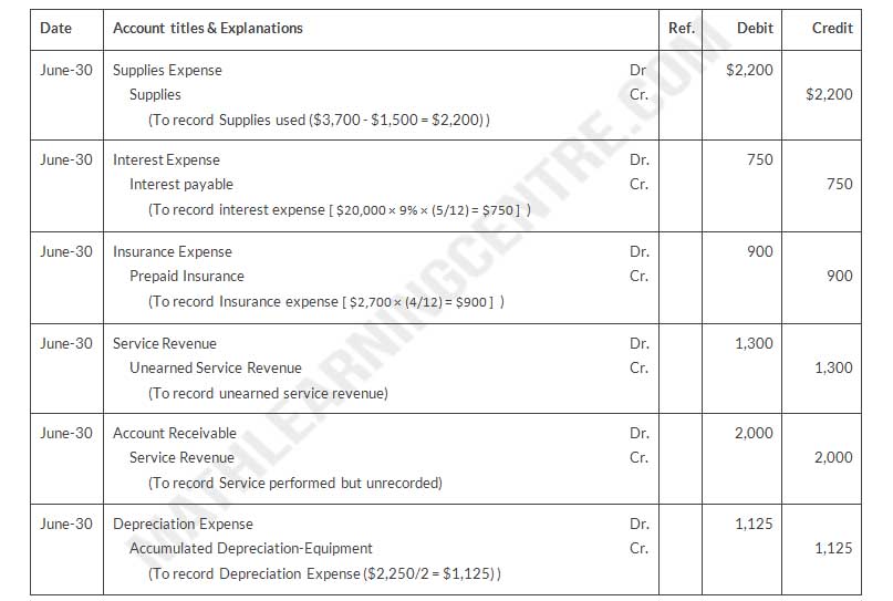- Journalize the adjusting entries at June 30. (Assume adjustments are recorded every 6 months.)