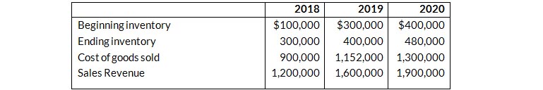 Calculate inventory turnover, days in inventory, and gross profit rate for Abdullah's Photo corporation for 2018, 2019, and 2020. Comment on any trends.