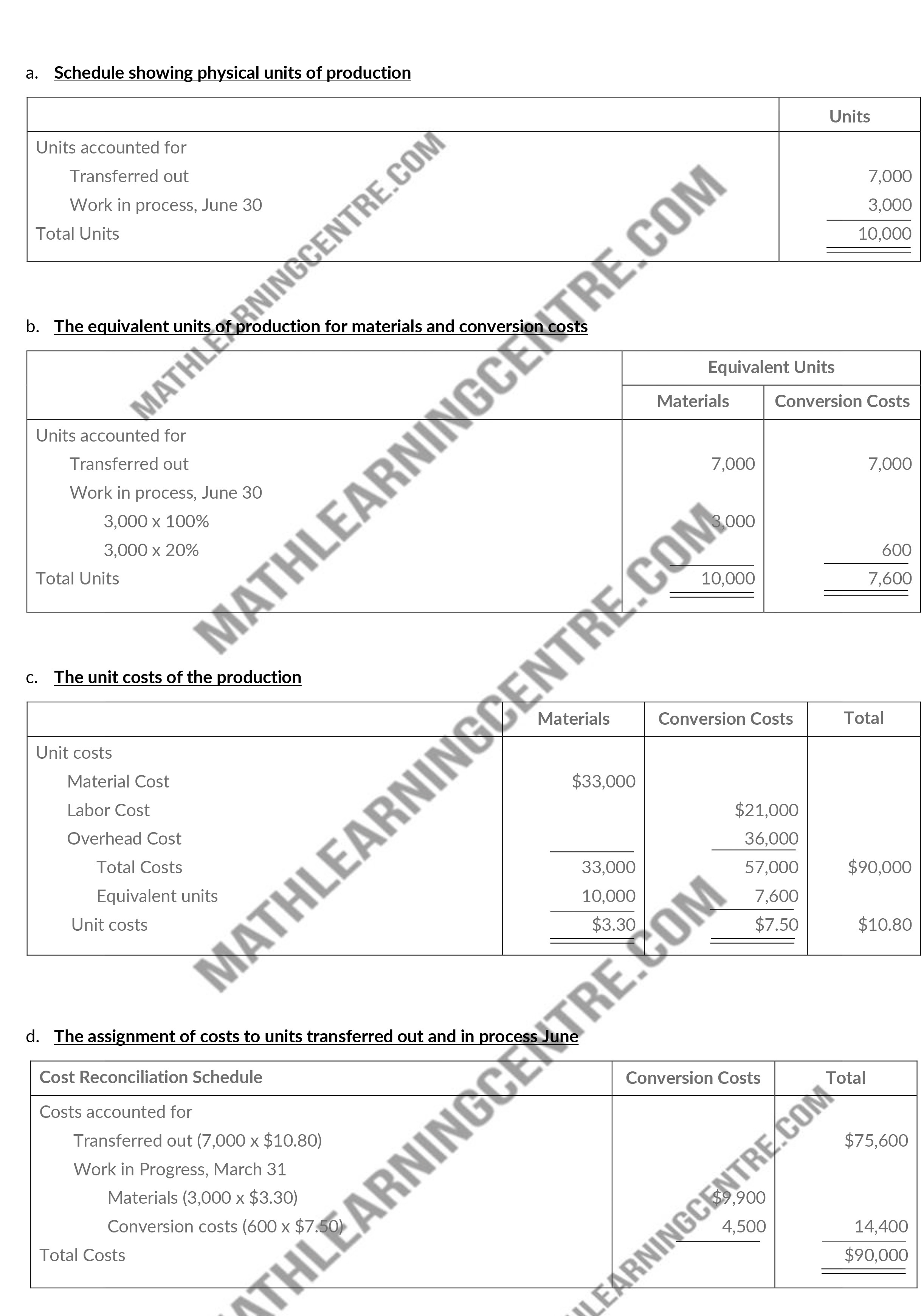 Production 7,000 units finished and transferred out: 3,000 units started that are 100% complete as to materials and 20% complete as to conversion costs