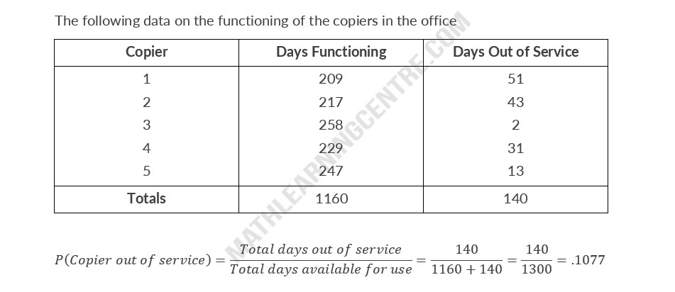 The office manager of an insurance company has the following data on the functioning of the copiers in the office:
